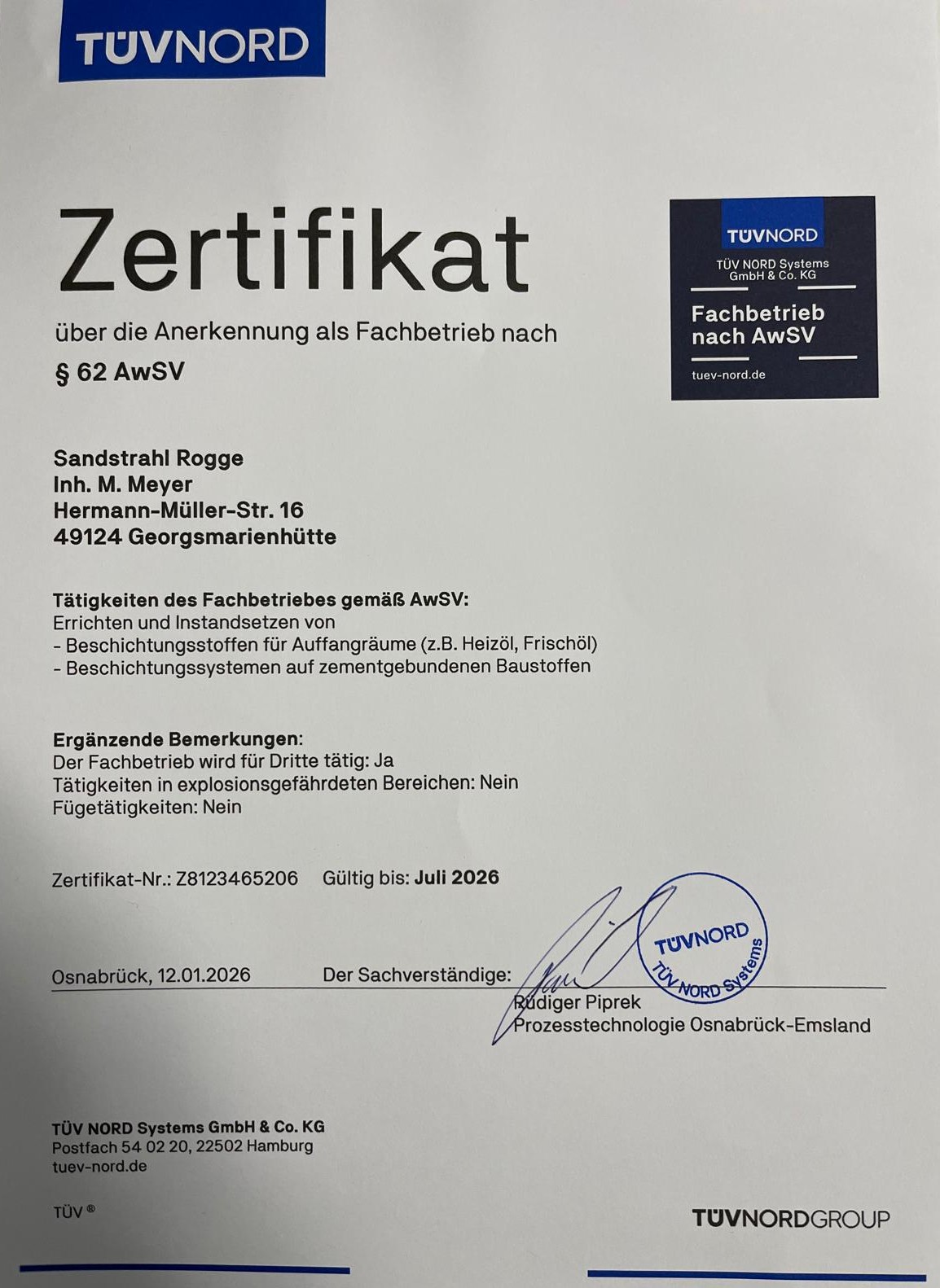 Seit dem 01.01.2015 wird die Firma von Michael Meyer und seiner Frau Brigitte im Sinne der Familie Rogge geführt.
